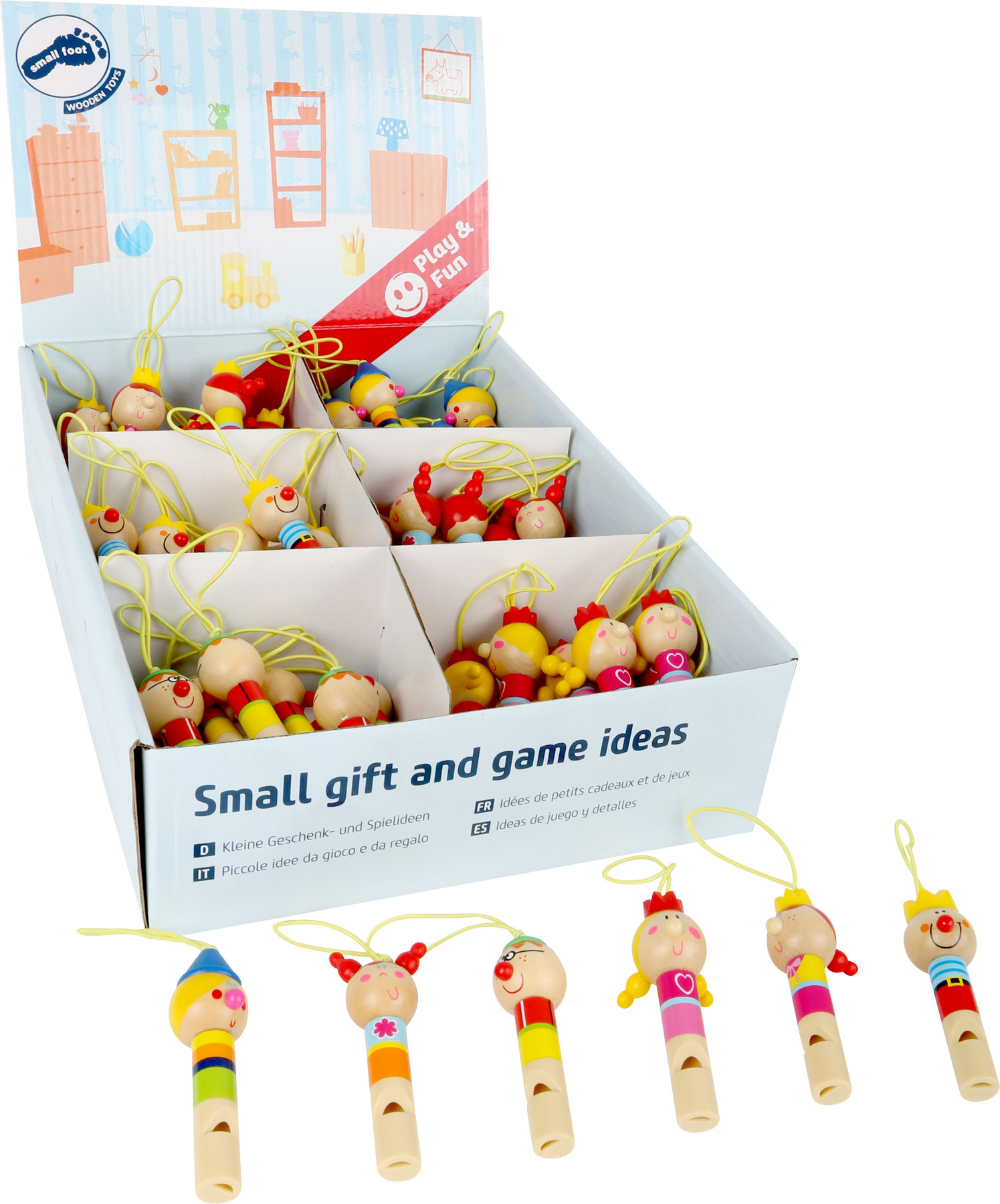 Sada 48 ks. Roztomilý společník! Přívěšek na klíče ze dřeva, má přírodní i barevné prvky. Je to píšťalka, na kterou děti mohou v dlouhé chvíli hrát. Můžete si vybrat například klauna, princeznu, prince... Perfektní jako malý dárek do adventního kalendáře nebo jen tak pro radost. Hlavní vlastnosti: