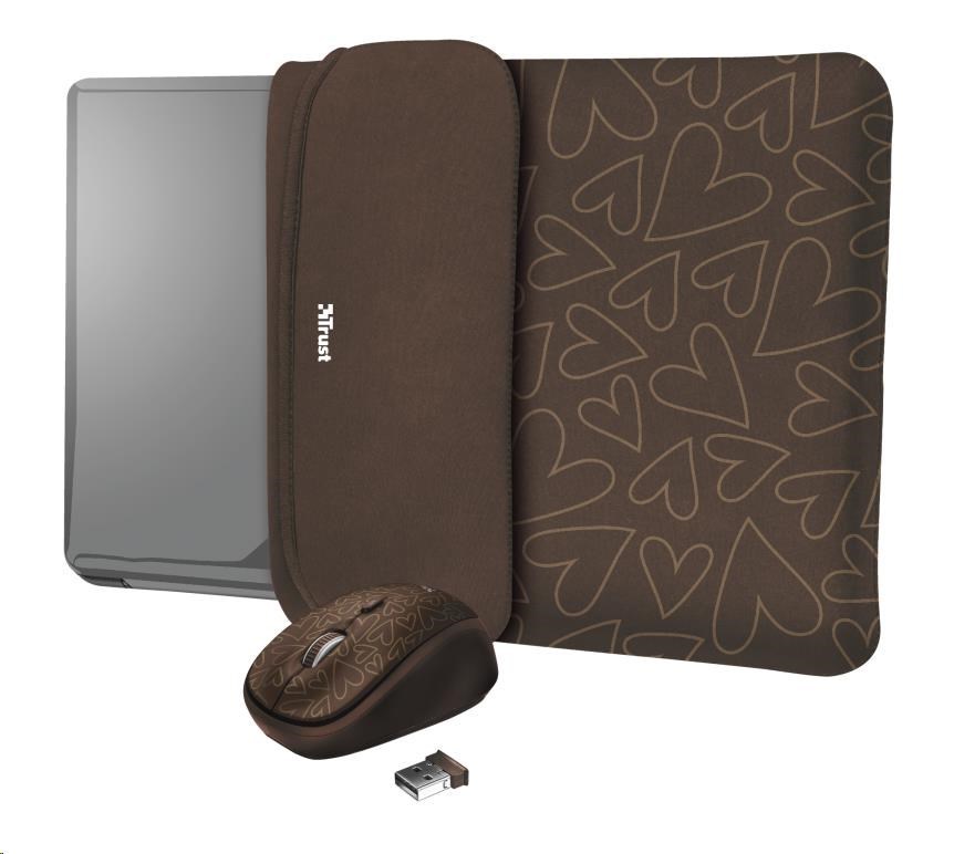 Yvo Reversible 15.6” Laptop Sleeve and Wireless Mouse - Brown Hearts2-in-1 set: reversible laptop sleeve (15.6'') and compact wireless mouseThe perfect match: sleeve and mouse in oneFor a unicolour look on your deskDurable and shock-absorbing neoprene sleeveReversible sleeve: go for a different...