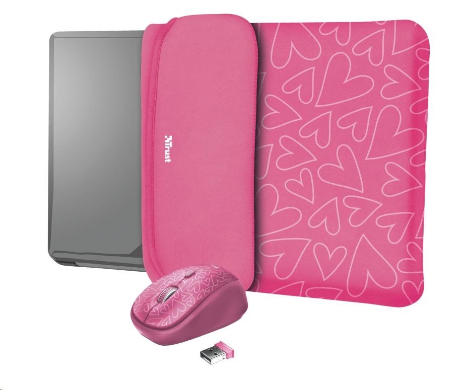 Yvo Reversible 15.6” Laptop Sleeve and Wireless Mouse - Pink Hearts2-in-1 set: reversible laptop sleeve (15.6'') and compact wireless mouseThe perfect match: sleeve and mouse in oneFor a unicolour look on your deskDurable and shock-absorbing neoprene sleeveReversible sleeve: go for a different...