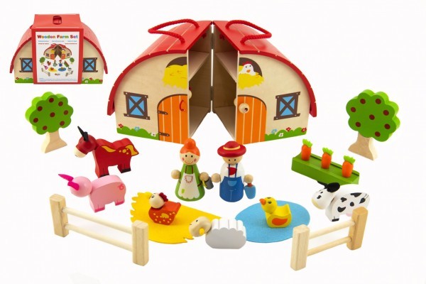 Domeček dřevěná farma s doplňky 15 ks ve fólii 24x15x12cm