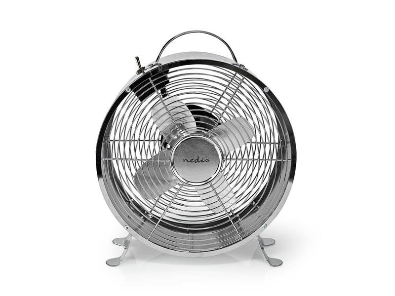 Tento retro Nedis stolní ventilátor je vybavený pevnou celokovovou konstrukcí s protiskluzovými nožičkami, díky kterým bude bezpečně stát na svém místě na stole. Disponuje dvěma rychlostmi, které zajišťují svěží vánek i během těch nejteplejších dní, a to jak doma, tak v kanceláři. Pokud se potřebujete přemístit, můžete si ventilátor díky držadlu navrchu vzít s sebou. Pomocí kabelu dlouhého 1,5 metru můžete ventilátor umístit přesně tam, kde ho potřebujete nejvíc.
