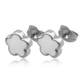OPN1557 Ocelové náušnice - kytičky bílé - květiny