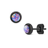 OPN1441-OP38 Černé ocelové náušnice s fialovými opály
