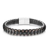 NR1221-21 Kožený náramek s ocelovou sponou, délka 21,5 cm - černá
