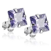 OPN1608 Ocelové náušnice - světle fialové zirkony 6x6 mm