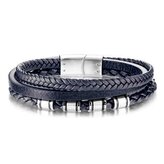NR1226-20 Modrý kožený náramek s ocelovými komponenty, délka 20 cm
