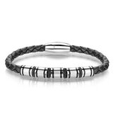NR1224-21 Kožený náramek s ocelovými komponenty, délka 21,5 cm - černá