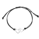 ON006K Černý textilní náramek s propojenými srdíčky - srdce