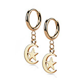 OPN1823-RD Zlacené ocelové náušnice - měsíc s hvězdou