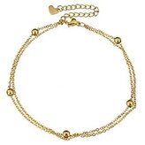 RN1129-GD Dvojitý zlacený ocelový náramek na nohu s kuličkami