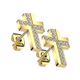 OPN1985-GD Zlacené ocelové náušnice křížky se zirkony