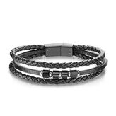 NR1224-19 Kožený náramek s ocelovými komponenty, délka 19 cm - černá