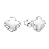 EG1361 Stříbrné náušnice čtyřlístky s růžovou perletí - květiny