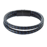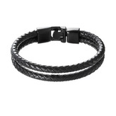 EG7516 Náramek pánský s koženkovými pásky a sponou na magnet - černá