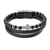 EG7504-21 Náramek pánský koženka a korálky s křížkem - černá