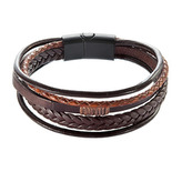 EG7515 Náramek pánský s koženkovými pásky a sponou na magnet - hnědá