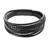 EG7514 Náramek pánský s koženkovými pásky a sponou na magnet - černá