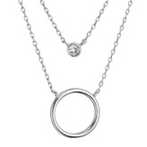 EG4419 Stříbrný náhrdelník dvajitý řetízek kroužek a zirkon