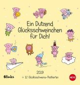 Ein Dutzend Glücksschweine Postkartenkalender 2019