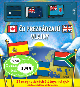 Deti sa z tejto knižky zábavnou formou naučia všetko potrebné o krajinách a ich vlajkách. Nájdu v nej okrem máp rozličných častí sveta,faktov a informácií o 48 krajinách aj 24 magnetických vlajok.Magnety môžete využiť rôznymi spôsobmi.