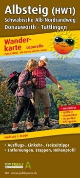 PublicPress Leporello Wanderkarte Albsteig (HW1), Schwäbische Alb-Nordrandweg, Donauwörth - Tuttlingen