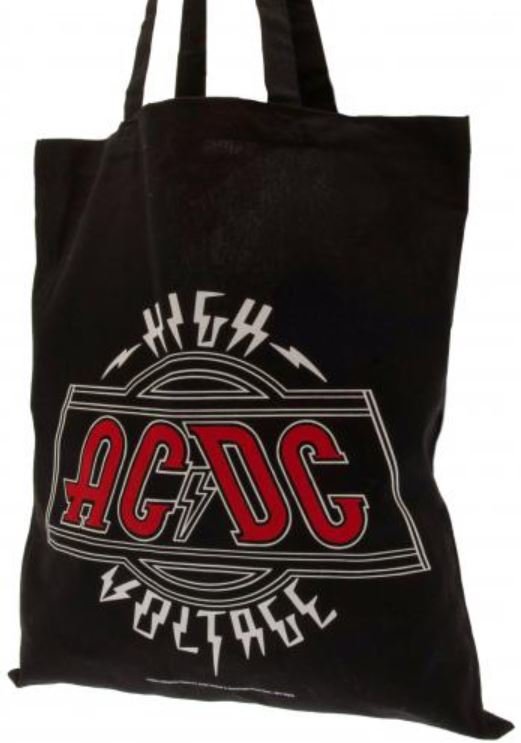 Plátěná taška černé barvy s logem hudební skupiny AC/DC.