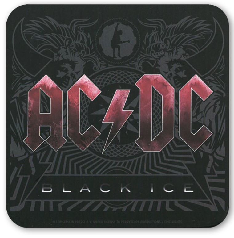 Tácek pod sklenici inspirovaný hudební skupinou AC/DC a jejich logem.