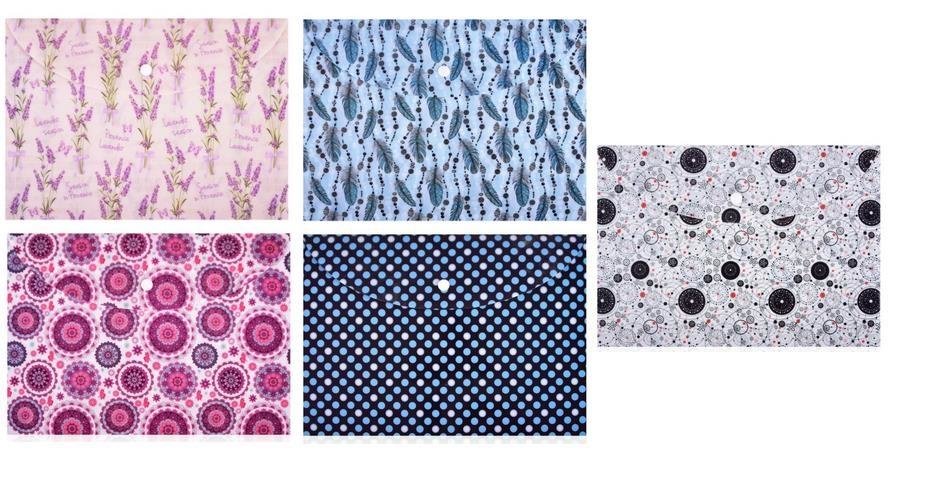 Ozdobna koperta na dokumenty formatu A4, zapinana na zatrzask. Mix wzorów, wzory wysyłane losowo przeczytaj całość