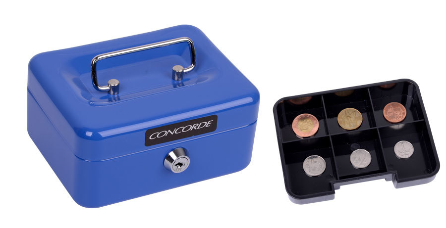 Metalowa kasa wykonana z bezszwowej blachy stalowej, przegródka na monety, zamykana na klucz, przenośna. 150 x 120 x 71 mm przeczytaj całość