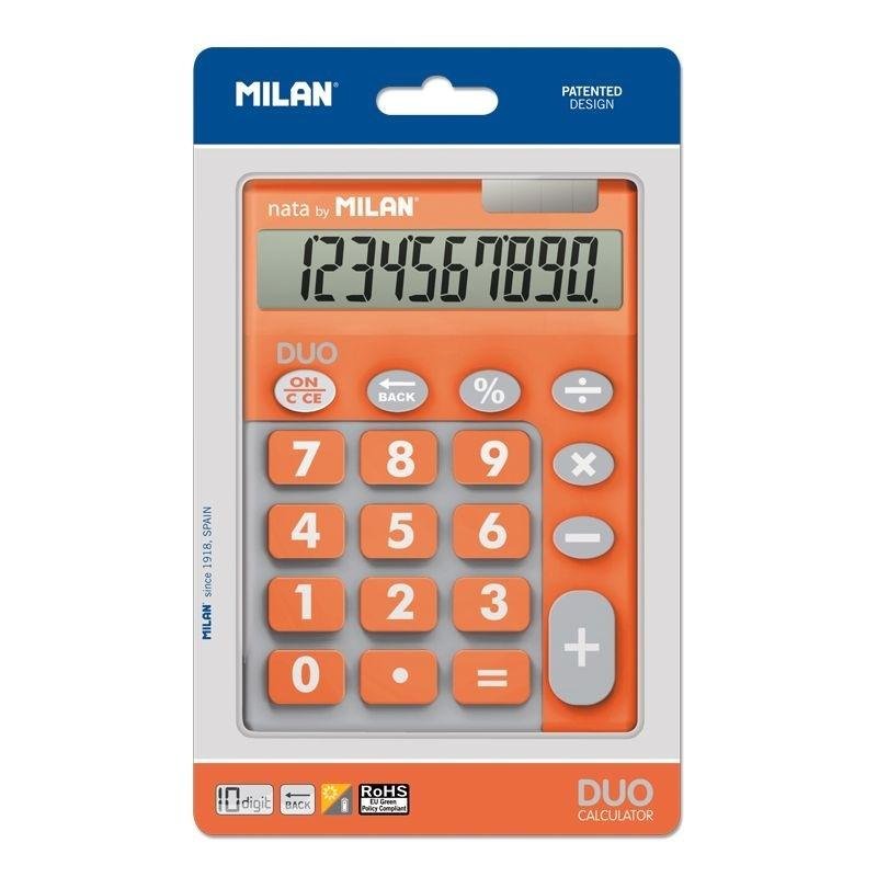 Kalkulator 10-pozycyjny z dużymi klawiszami i wyświetlaczem. Idealne dla osób starszych i słabowidzących. Wyrazisty pomarańczowy kolor podkreśla unikalny disign kalkulatora. Klawisz cofania. Podwójne zasilanie: bateria 1,5V oraz bateria słoneczna. Automatyczne wyłączanie. Kalkulatory MILAN...