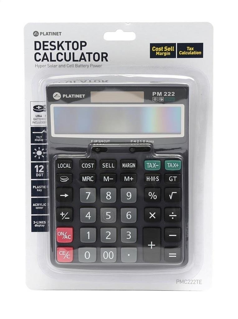 Kalkulator biznesowy z 3 liniami na wyświetlaczuPosiada:- 12-cyfrowy wyświetlacz- zasilanie bateryjne- zasilanie słoneczne- plastikowe przyciski- akrylowa powłoka- pochylony wyświetlacz- tax calculation- wyliczanie podatku- koszt-sprzedaż-marża- 3 liniowy wyświetlacz przeczytaj całość