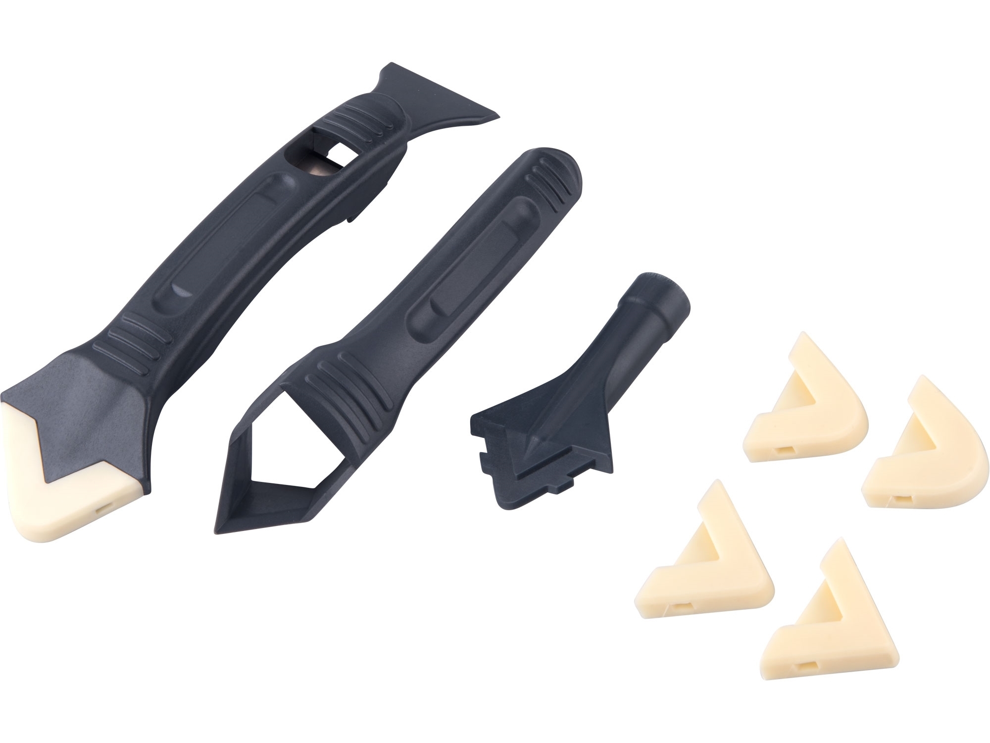 sada obsahuje pět silikonových nástavců na vyhlazení tmelu s rádiusy v mm R3-R6-R10-R13-R17 (tyto lze nasadit do nástavce na kartuše nebo na druhý konec ručky se škrabkou); sada dále obsahuje nástavec na kartuše, ručku na silikonové nástavce se škrabkou a ručku s rohovým seřezávačem tmelu s... przeczytaj całość