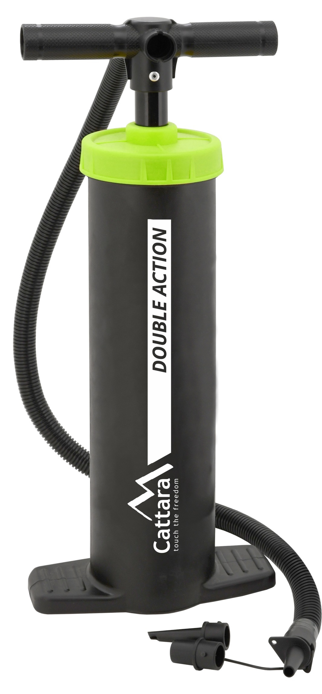 Vzduchová pumpa pro snadné a pohodlné nafukování matrací, člunů, bazénů a dalších nafukovacích předmětů. Pumpu lze použít jak pro nafukování, tak i pro vyfukování. Zařízení je opatřeno flexibilní hadicí s adaptérem, respektive multiadaptérem se třemi koncovkami pro různé nafukovací otvory. Ruční pumpa Double action je konstruováná tak, že tlačí vzduch v obou polohách - tlakem dolů, i tahem nahoru.
