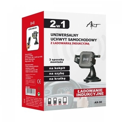 Držák do auta ART (AX ​​-30) s indukčním nabíjením + nabíječka do auta, barva černá