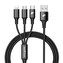 RhinoTech 3v1 USB-A kabel Micro + Lightning + Type-C 1.2m černá