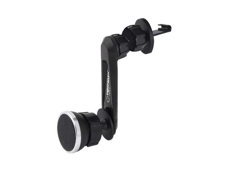 Držák do auta namontovaný na ventilační kleci. Konstrukce držáku umožňuje snadné otáčení telefonu v rozsahu 360°. Použití pohyblivého ramene zvyšuje možnosti nastavení. Uživatel může libovolně manipulovat s polohou telefonu vůči držáku. Magnetická základna umožňuje rychlou a pohodlnou montáž telefonu bez poškrábání a poškození krytu. Sada obsahuje dvě kovové destičky různých tvarů, určené pro montáž přímo na telefon nebo dovnitř pouzdra.