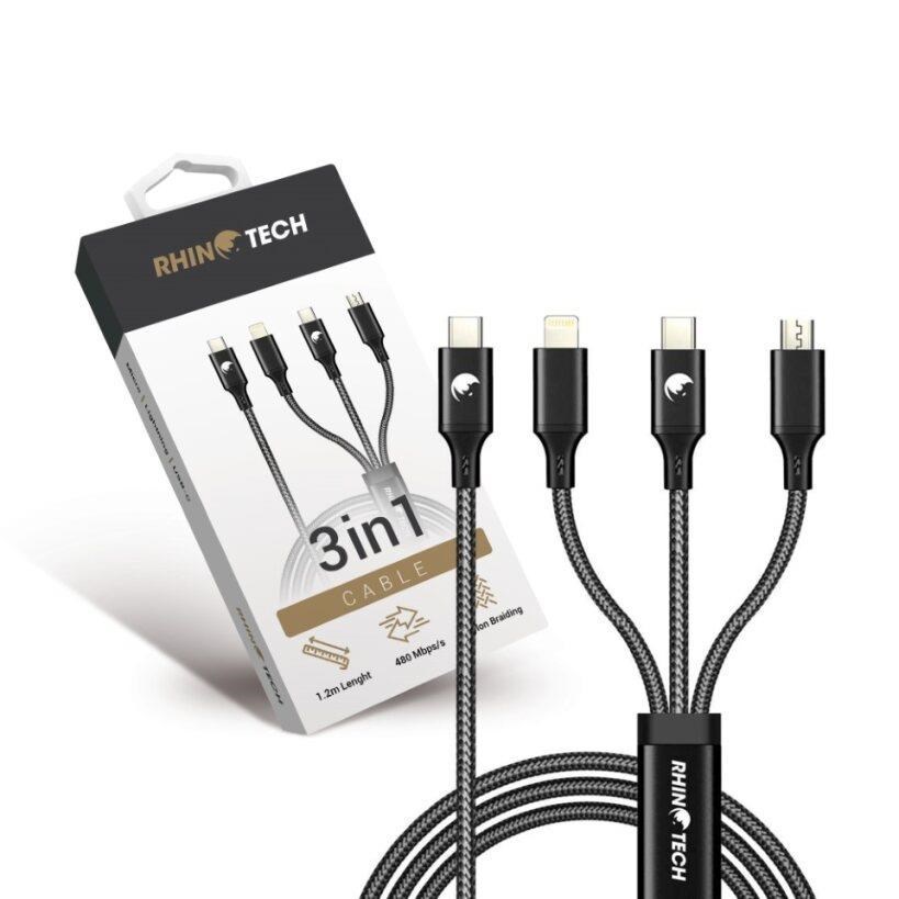 RhinoTech nabíjecí a datový kabel 3v1 USB-C (MicroUSB + Lightning + USB-C) 40W 1,2m černá