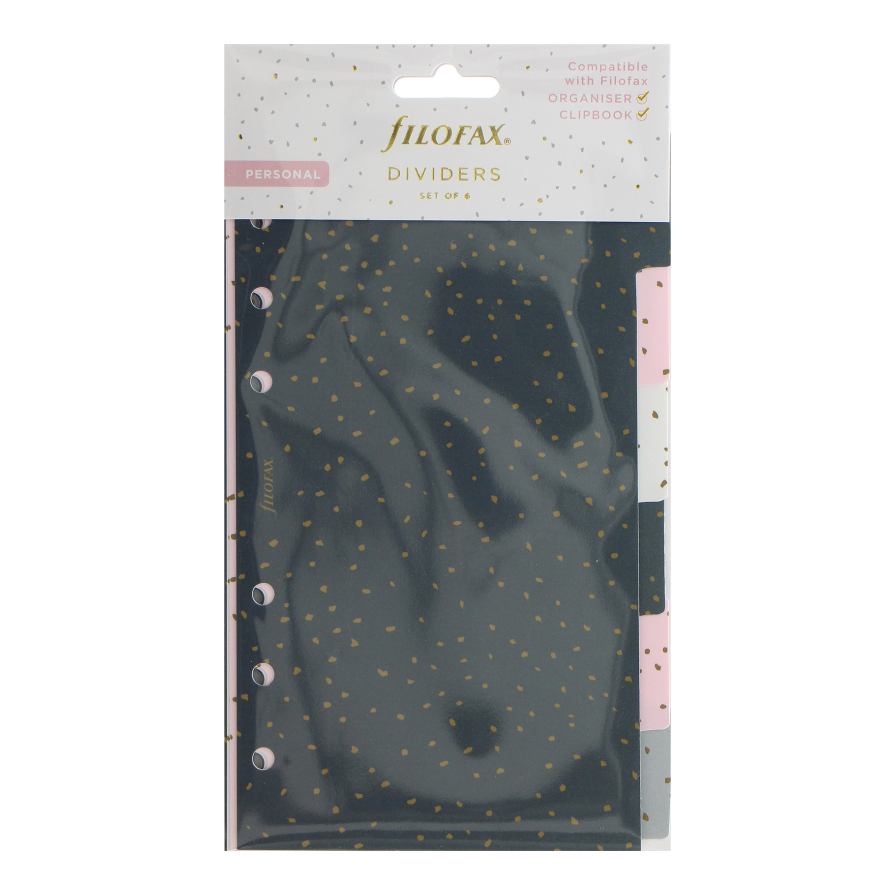 Dodaj swojemu organizerowi jeszcze więcej doskonałości dzięki temu kolorowemu zestawowi sześciu wytrzymałych plastikowych przekładek z kolekcji Confetti. Zostały specjalnie zaprojektowane dla organizerów Filofax lub Clipbook w rozmiarze personal. W zestawie znajdziesz przekładki w kolorach czarnym, różowym, białym i szarym, z nadrukiem po obu stronach. Dodatkowe cechy 6 przekładek z pustą etykietą
