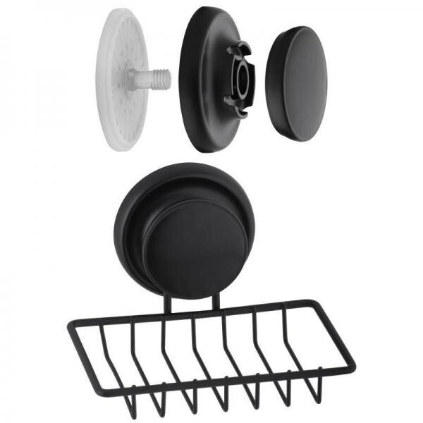 Mýdlenka s přísavkou:rychlá, snadná, bezpečná instalace, není potřeba vrtání ani lepení a demontáž nezanechává žádné stopy,vhodná na dlaždice, lamináty, lednice, sklo a další hladké povrchy,černá barva v matném provedení,rozměry: celková výška: 11 cm, výška misky na mýdlo: 2 cm, šířka: 10 cm,...