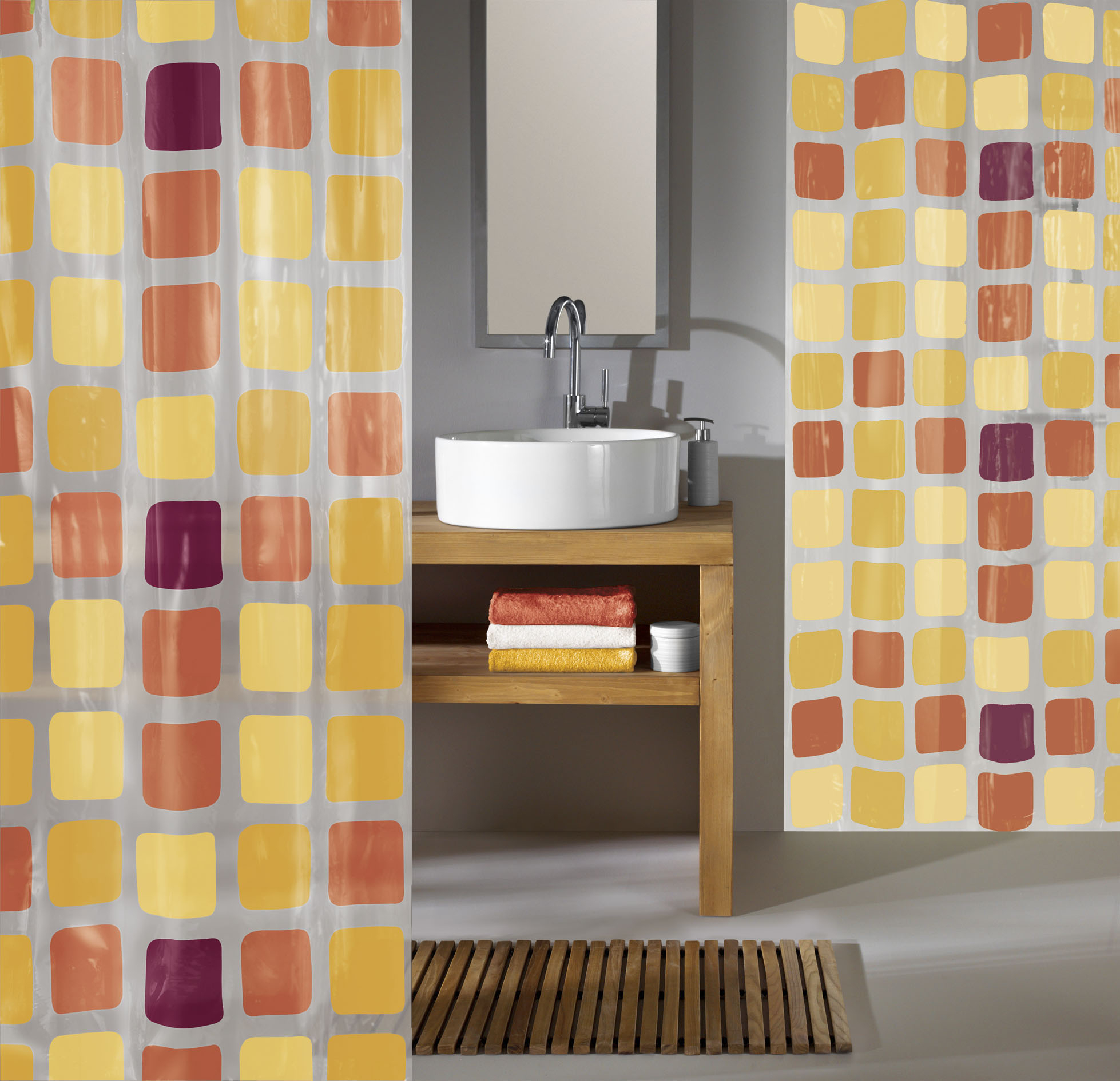 Zasłona prysznicowa Kleine Wolke Sonny 180x200 cm pomarańczowa; Zasłona łazienkowa winylowa jest wykonana w 100% z PEVA (ekoplast) z wzorem płytek.; Zasłona prysznicowa Kleine Wolke Sonny 180x200 cm pomarańczowa; Zasłona łazienkowa winylowa wykonana jest w 100% z PEVA (EKOPLAST) z motywem płytek. przeczytaj całość