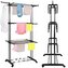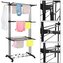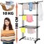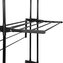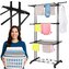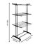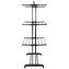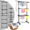 Podstawowe dane: Marka: Springos®. Materiał: metal, tworzywo sztuczne. Maksymalne obciążenie: 10 kg. Liczba poziomów do wieszania prania: 3. Liczba rurek na poziomach: 8. Liczba uchwytów na wieszaki: 2. Typ: składana, na kółkach. Waga: 3,2 kg. Wymiary rozłożonej suszarki: Całkowita długość: 75,5 cm (bez pętli na wieszak). Całkowita szerokość u podstawy: ok. 49 cm. Boczy element podstawowy: 5 x 3,5 cm (D x S). Maksymalna szerokość mierzona na zawieszanych poziomach: ok. 63 cm. Całkowita wysokość: 180 cm. Grubość rurek konstrukcyjnych: 1,7 / 2 cm. Długość rurek na poziomach: 69 cm. Grubość rurek na poziomach: 1 cm. Odległość między rurkami na poziomach: 7,5 cm. Odległość między poziomami: 55 cm. Element łączący rurki konstrukcji: 21 x 3,5 cm (długość x szerokość). Odległość od ziemi do dolnego poziomu: 58 cm. Odległość między nogami podstawy: 61 cm. Długość uchwytów do zawieszenia: 23 cm. Średnice otworów na wieszaki: 1,85 / 2 / 2,16 / 2,31 / 2,50 / 2,62 / 2,65 cm. Szerokość bocznej konstrukcji wraz z rurkami: 10,5 cm. Szerokość bocznej konstrukcji między rurkami: 7 cm. Średnica koła: 4 cm. Powierzchnia suszenia: 17 m. Dodatkowe informacje: Produkt do samodzielnego montażu. Dolne kółka umożliwiają suszenie butów.