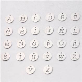 OK1306-M Drobný kulatý ocelový přívěšek - iniciála - iniciála "M"