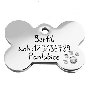 PZ033-S Ocelová psí známka - kost se zirkony, vel. S - zvířátka