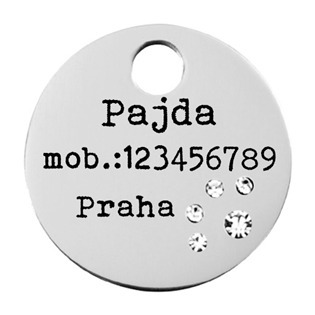 PZ046 Ocelová psí/kočičí známka se zirkony