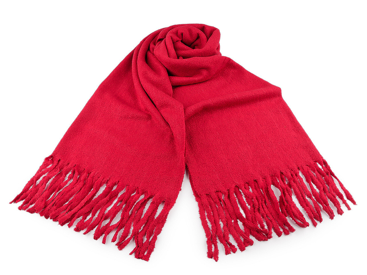 Zimní šála / pléd buklé s třásněmi 65x190 cm - 1 ks - 4 červená