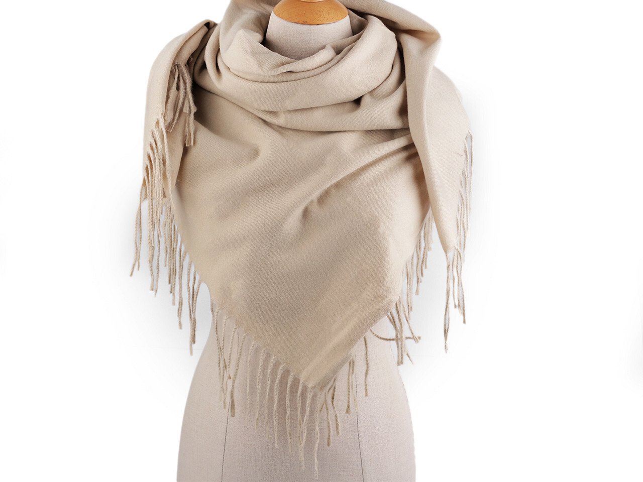 Velký teplý šátek / pléd s třásněmi, jenobarevný, káro 100x105 cm - 1 ks - 1 béžová světlá jednobarevný