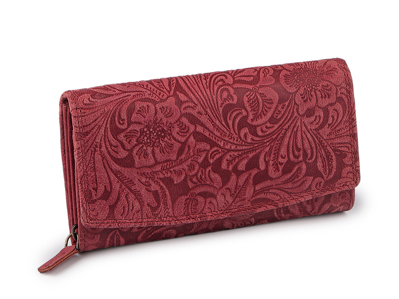 Dámská peněženka kožená s květy - 1 ks - 34 červená