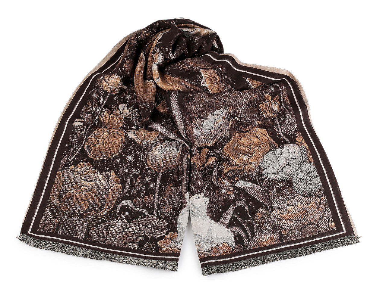 Šátek / šála / pléd typu kašmír 70x185 cm - 1 ks - 3 hnědá