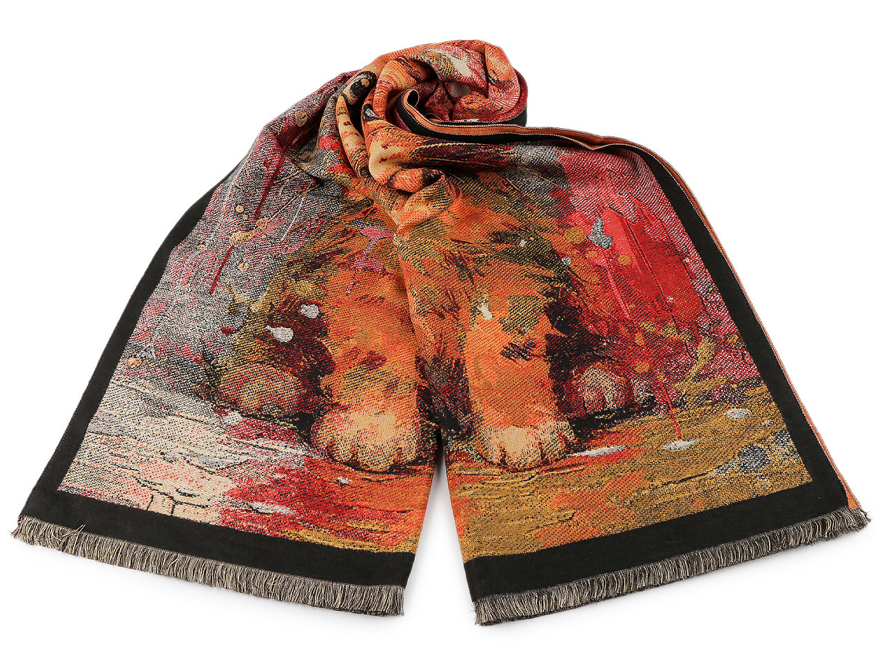 Šátek / šála / pléd s třásněmi 65x190 cm - 1 ks - 14 oranžová