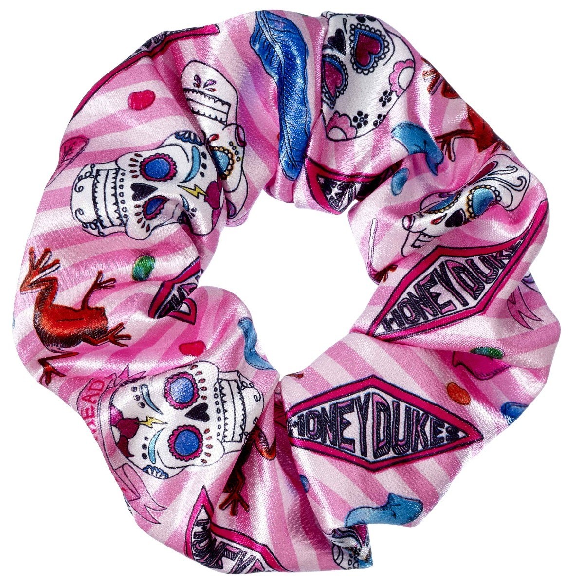 Růžová gumička do vlasů se symboly Medového ráje (Honeydukes) z příběhů o Harry Potterovi potěší zvláště mlsné fanoušky! Stylový doplněk kostýmu a oblečení. Vnější průměr gumičky je cca 11 cm. przeczytaj całość